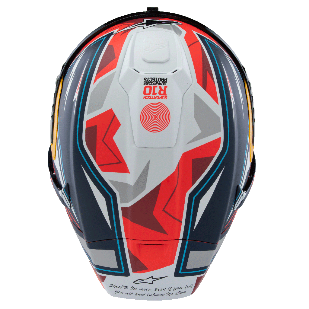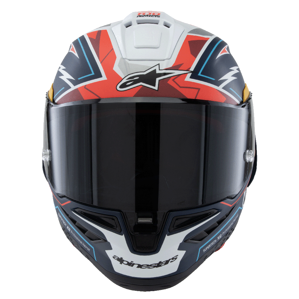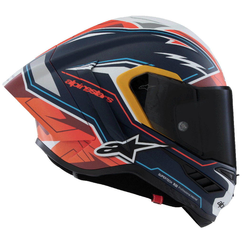 The result of over 10 years of intensive study, development, and testing, the goal of the Alpinestars Supertech family of helmets is to create the most advanced, protective, and performance-enhancing helmets possible for racers and riders worldwide. Following years of extensive research, development, and testing of the Supertech R10 road racing helmet by Alpinestars’ Helmet Product Development Department, together with together with MotoGP legend Andrea Dovizioso, MotoGP riders’ Jorge Martin, Jack Miller & Pedro Acosta. With the S-R10, the focus of the design was to ensure the highest level of performance, especially when it comes to protection and a new level of safety. The S-R10 Helmet has been engineered to provide the perfect blend of excellent ventilation, unsurpassed comfort, and the lightest weight possible without compromising on any other front. Another crucial element unique to the S-R10’s design and development is the helmet’s advanced aerodynamics, with countless sessions in the wind tunnel aimed at reducing drag and providing optimal aerodynamic stability.
