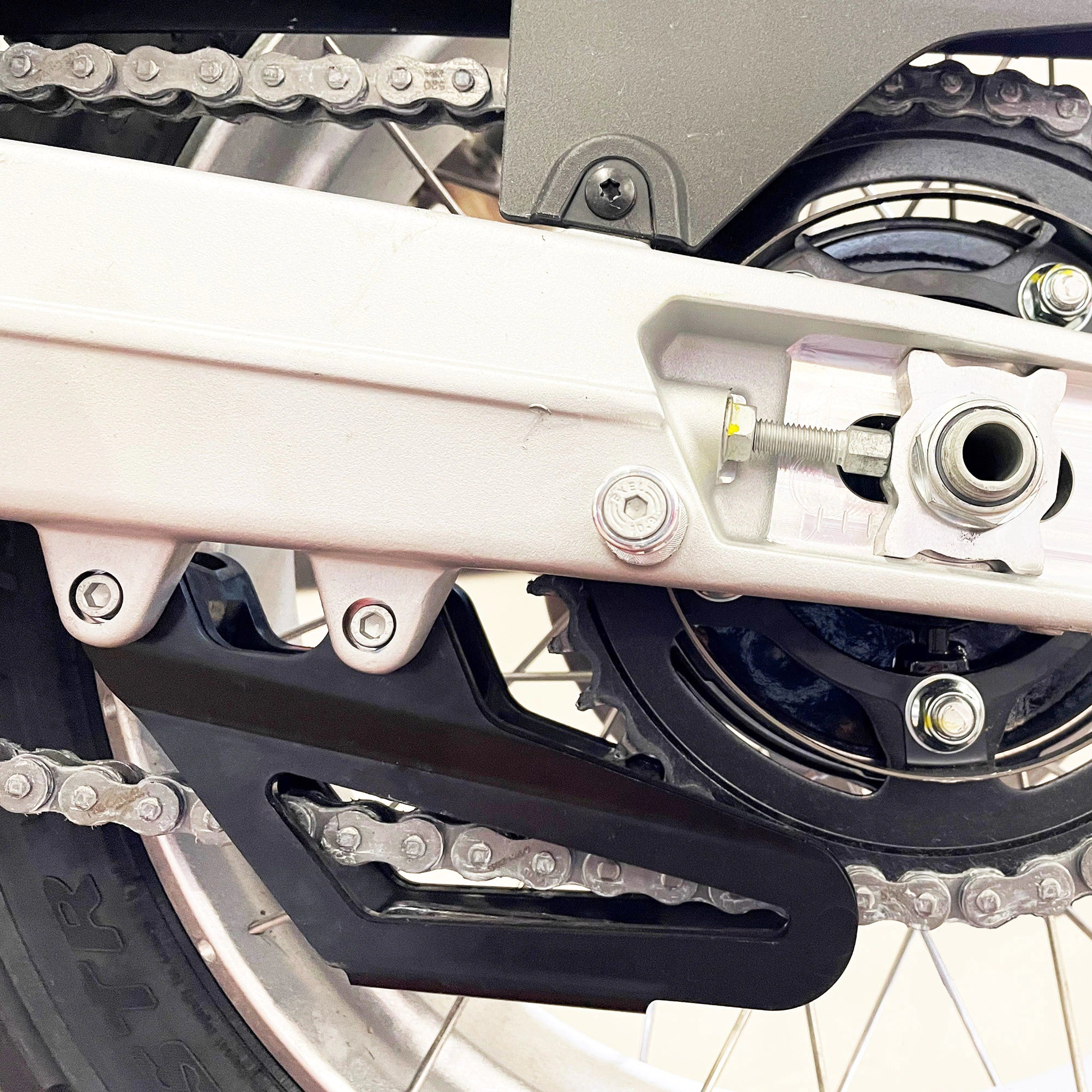 The Aprilia Tuareg 660 Chain Guide Kit is an essential accessory for off-road/adventure riding, as it guarantees optimal chain performance in extreme riding conditions. This prevents the build-up of dirt and debris, which can lead to transmission issues. It is especially crucial for those planning on true adventure riding, as a mud-caked chain can have catastrophic consequences. By using this kit, you can ensure the longevity of your chain and avoid any unpleasant surprises on your bike.