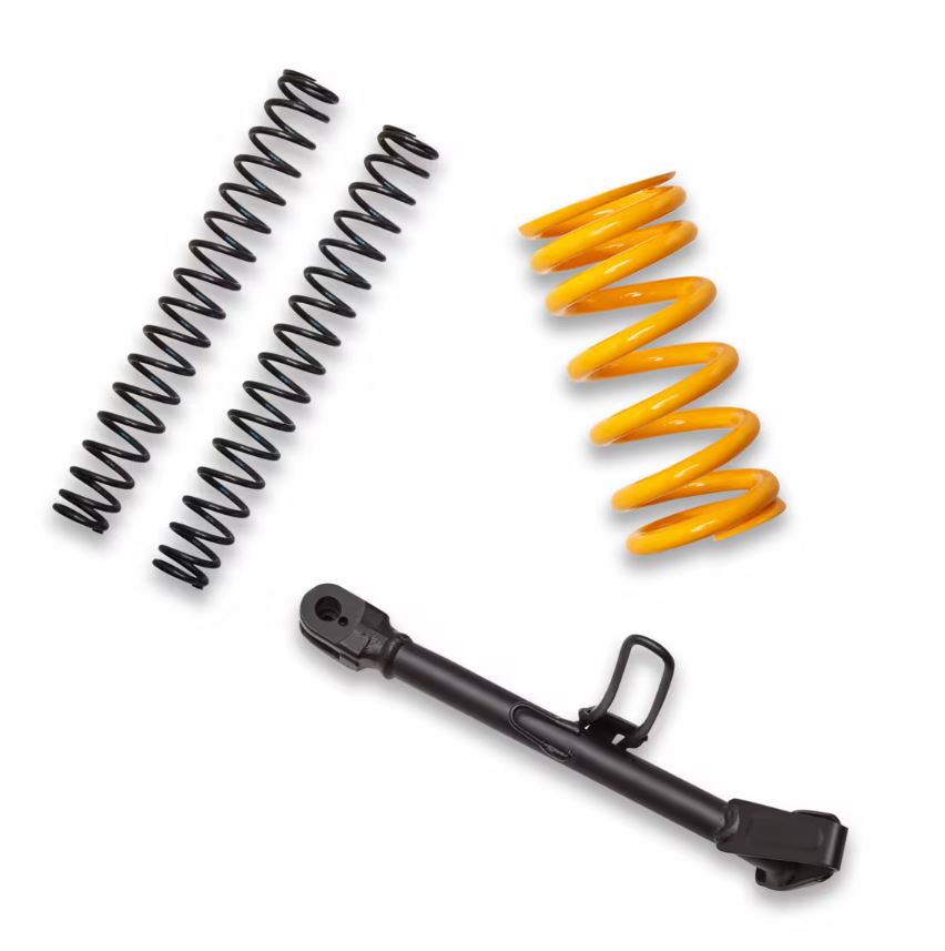 Reduce the height of your Ducati DesertX bike by 20mm without compromising its renowned riding experience with the included fork springs, shock absorber spring, and side stand in the DesertX Lowering Kit.