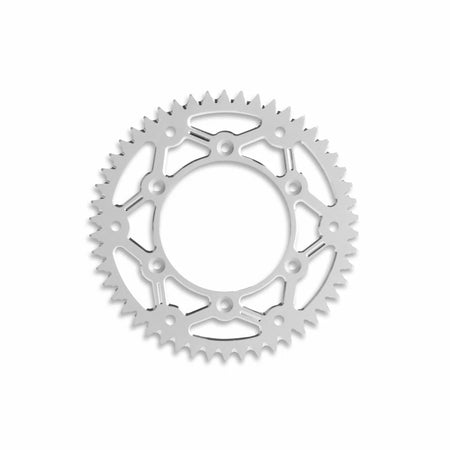 Constructed from ERGAL 7075T6 aluminum alloy and precisely CNC-machined, the Ducati Desmo450 MX 51 Tooth Rear Sprocket delivers exceptional lightweight performance with top-tier Z51 teeth. Each tooth features a milled notch at its base to effectively shed dirt and mud buildup. The sprocket’s surface is treated with hard anodizing to resist corrosion and prolong its lifespan. Strict dimensional and quality checks ensure superior durability and sustained precision throughout its service life.