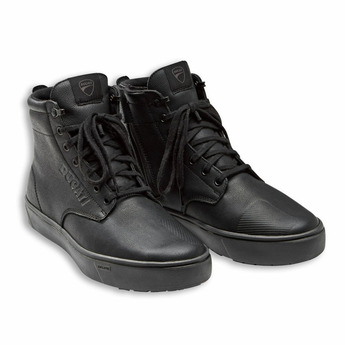 The Ducati Downtown C2 Technical Short Boots are a motorcycle sneaker that combines maximum riding and walking comfort with high levels of protection. Totally waterproof thanks to the T-DRY membrane, it has a full grain leather upper that makes it particularly comfortable and a special construction with hexagonal treads that facilitate grip. Reinforcements on the toe and heel and protection on the malleolus with TPU inserts maximize safety in addition to the outsole made of wear-resistant rubber, which provides stability even on slippery ground. Maximum protection thanks to the special Zplate® insert, made of molded polymer, which combines transverse rigidity and longitudinal flexibility. This allows the shoe to follow all the natural movements of the foot, both when riding and walking, while avoiding crushing in case of impact.Experience the ultimate fusion of performance and style with this unmistakably Ducati accessory. Designed to enhance your enjoyment of two-wheeled adventures, it's both sophisticated and visually striking.
