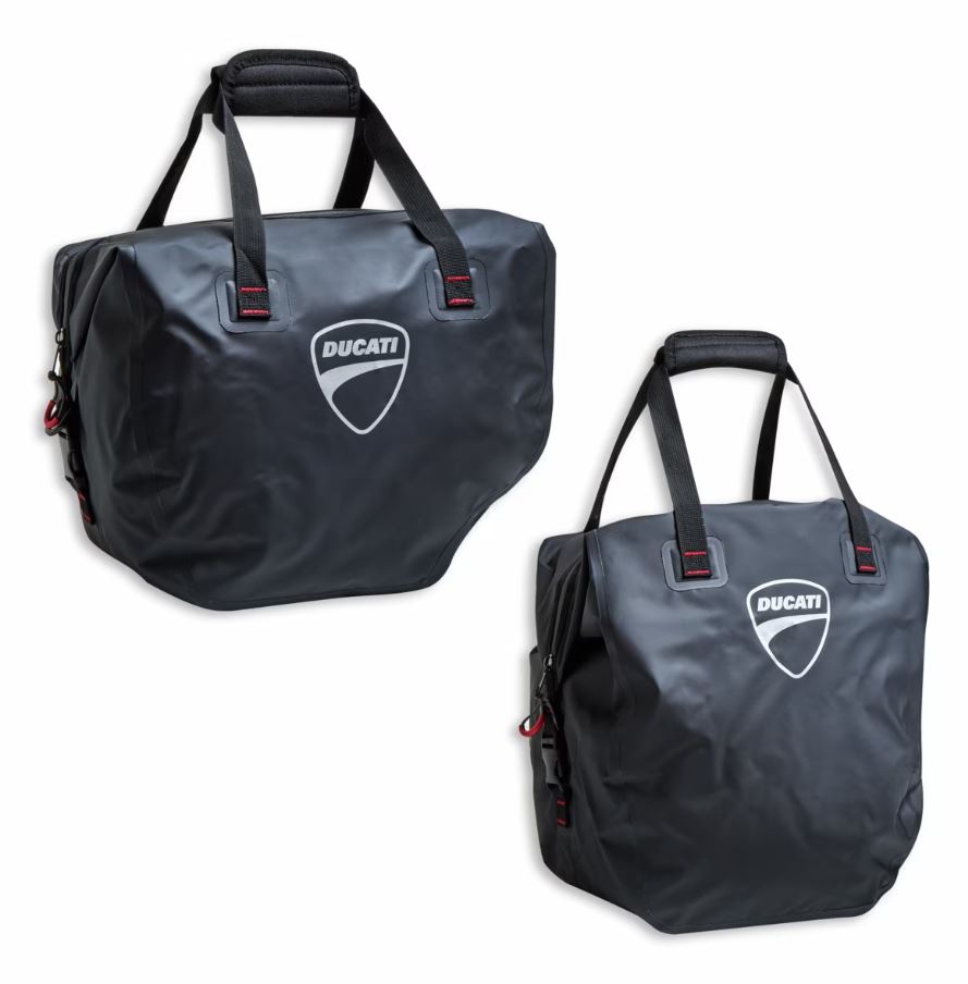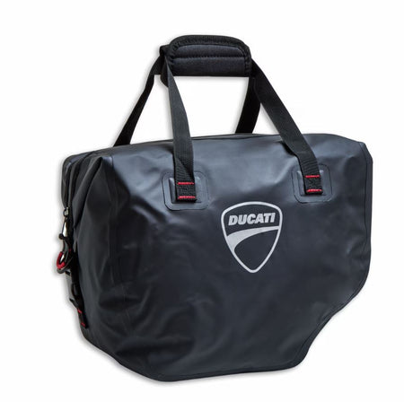 This Ducati Liner Set maximizes the space in your aluminum side panniers while keeping them organized. These versatile bags, featuring the Ducati Performance logo are made of durable waterproof black fabric and can easily be filled at home or at a hotel without removing the panniers from your bike. With convenient handles, they can also be carried as hand luggage for added ease and functionality without sacrificing style.