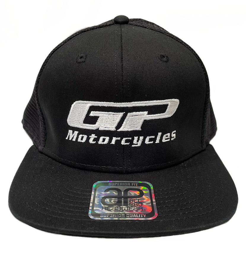 An official GP Motorcycles shop hat. Flat bill, snapback.