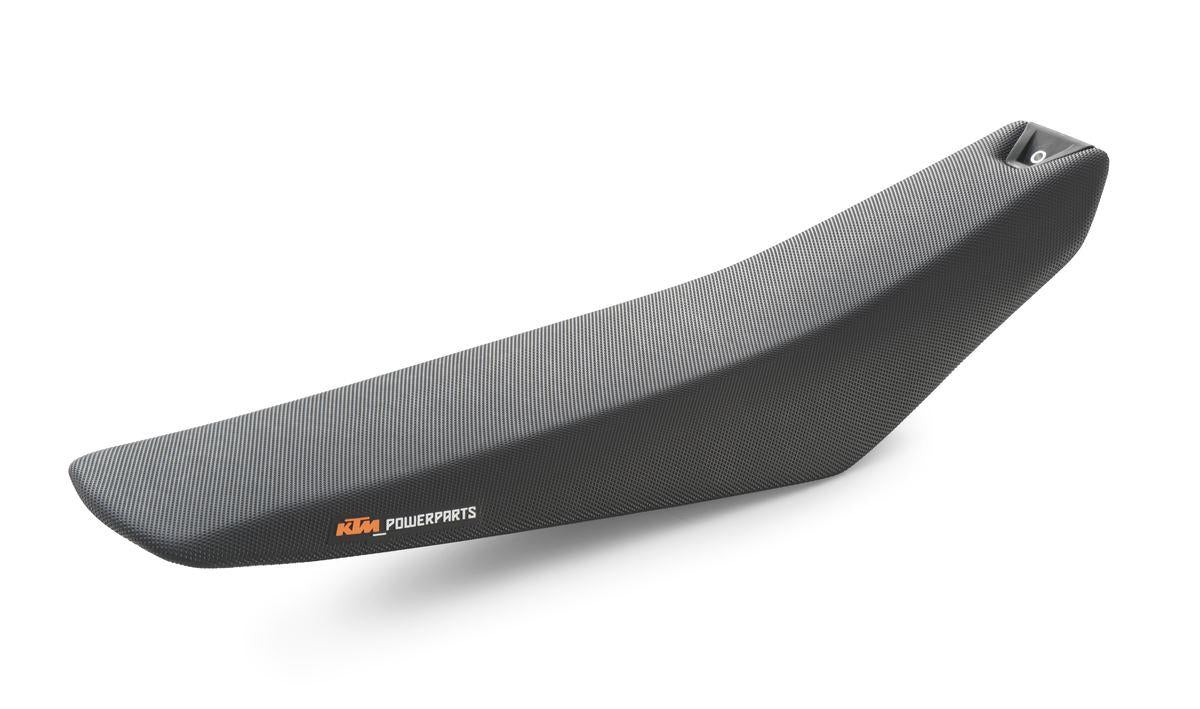 The KTM Comfort Seat for 2022-2025 MX/Enduro Models has a seat height that is equivalent to the standard seat. Additionally, it boasts a durable coating and flexible foam, both of which contribute to enhanced comfort.